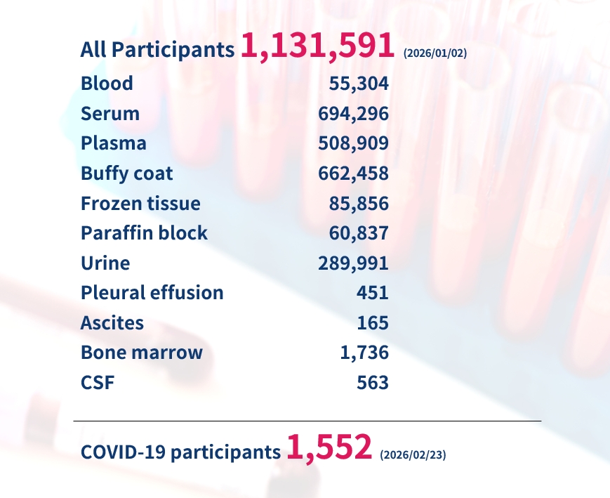 For the health of you and the next generation, welcome to join the human biodata database. As long as you are between 30 and 70 years old, people of nationality, no foreign descent, and no cancer can participate. If you have If you are willing to participate, you can contact our partner organization, sign a consent form, conduct a physical examination, collect samples (blood and urine, etc.), and fill out a questionnaire to contribute to biomedical research and promote healthy development.
